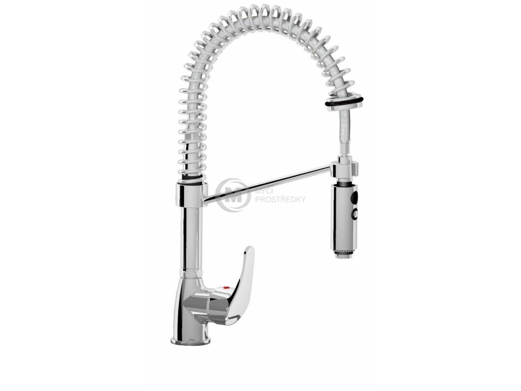 Model stolní s pákovým ovládáním, tlakovou hadicí a vyvažovací pružinou a sprchou s ovládáním. Model je v robustním provedení s odolnou kartuší, včetně přívodních hadic 3/8"(d=400 mm).